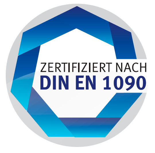 Die europäische DIN EN 1090 regelt den Konformitätsnach-weis, die werkseigene Produktionskontrolle, die Hersteller-zertifizierung und die CE-Kennzeichnung für tragende Stahl- und Aluminiumbauteile, die als Bauprodukte in Verkehr gebracht werden. Mit dem Zertifikat weisen wir nicht nur die Qualifikation unserer Mitarbeiter und die erforderliche technische Ausrüstung nach, sondern auch die Einhaltung der festgelegten wesentlichen Produkteigenschaften unserer Bauteile. Das Zertifikat ist eine zwingende Voraussetzung für die CE-Kennzeichnung unserer Bauteile aus Stahl und Aluminium und dem damit verbundenen Warenverkehr in der Europäischen Union.